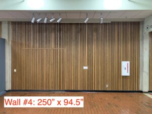- (3) 20’ walls with slated wood paneling (ceiling wire hanging mechanisms for display)